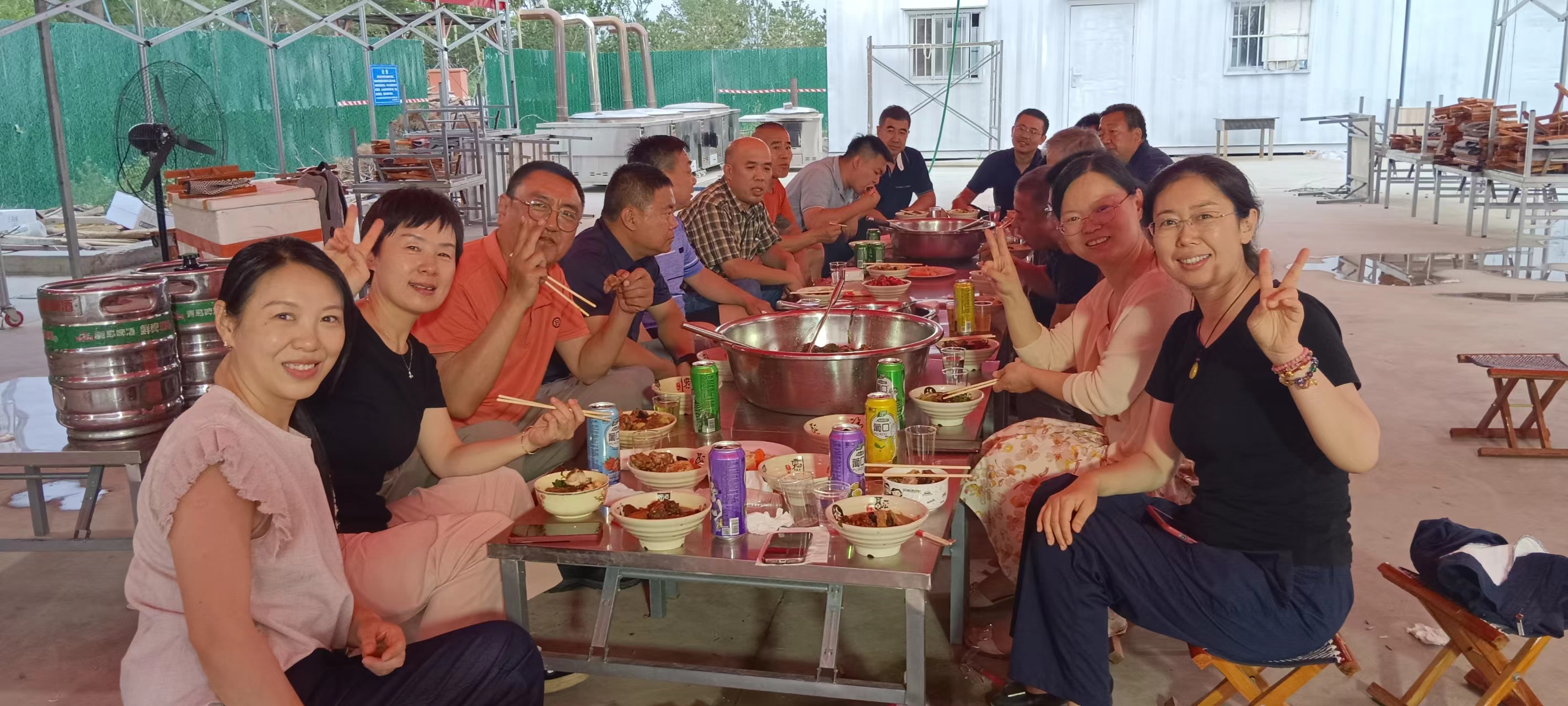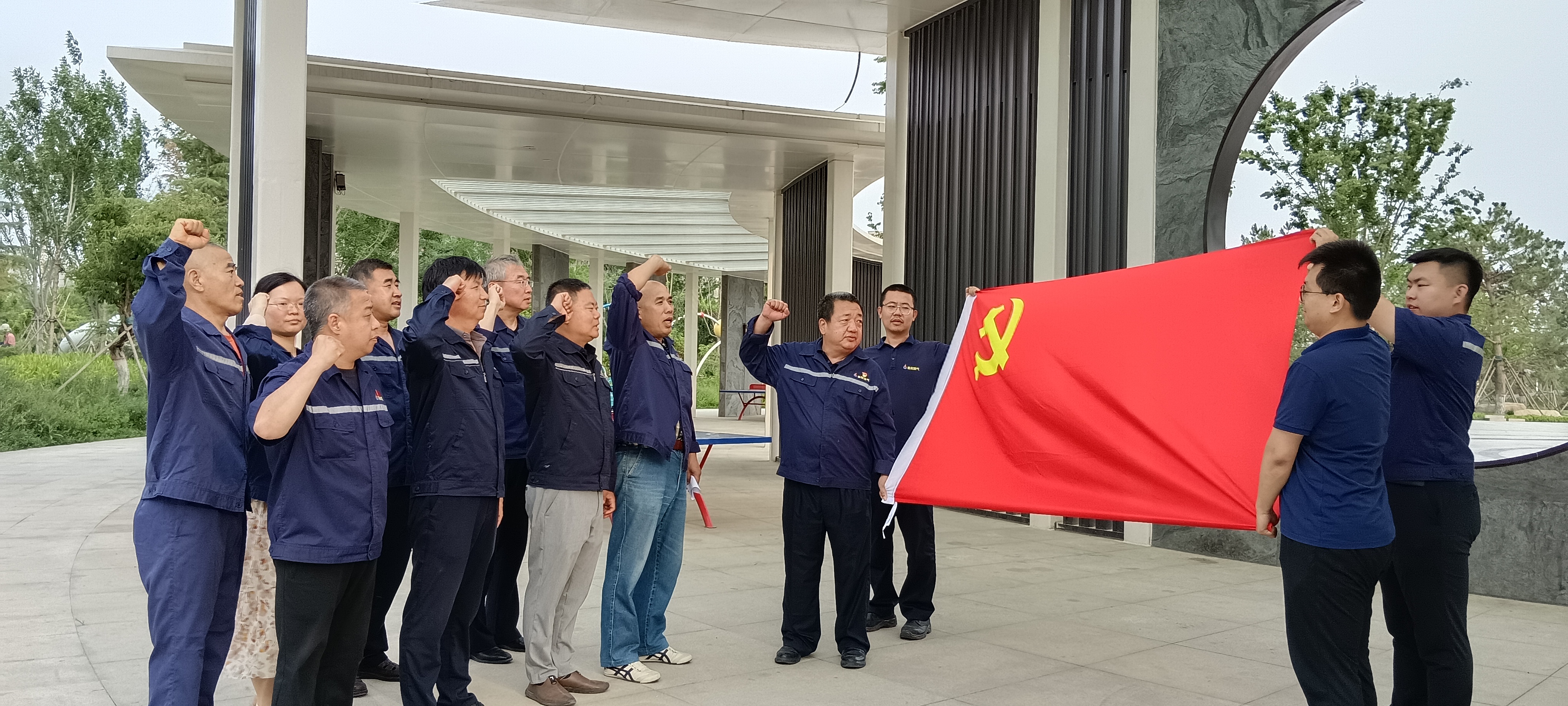 在景色如畫的長廊里,全體黨員重溫了入黨誓詞,鏗鏘有力的誓言提醒著每一位黨員牢記初心使命,以真抓實干踐行對黨的莊嚴(yán)承諾。支部副書記王樹林同志領(lǐng)學(xué)了《中國共產(chǎn)黨紀(jì)律處分條例》、習(xí)近平總書記視察山東時的講話精神以及天然氣燃爆事故案例等內(nèi)容,在綠草茵茵、風(fēng)景秀麗的室外,大家上了一堂別具風(fēng)格的黨課。隨后開展了唱歌、夠級、?;实葓F建活動,大家默契配合、斗智斗勇,不時爆發(fā)出一陣陣笑聲、喝彩聲。在徐徐晚風(fēng)中大家放松心情,圍坐在一起共同品嘗美味的大鍋燉,現(xiàn)場氣氛熱烈,歡聲笑語不斷。